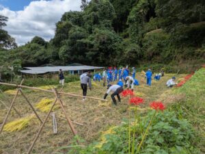 2025年9月30日、柱本小学校5年生が収穫体験をしました。