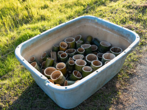 竹切りから蝋作り、設置、点火とみなさんの協力のもと400個の竹灯籠が灯されました。